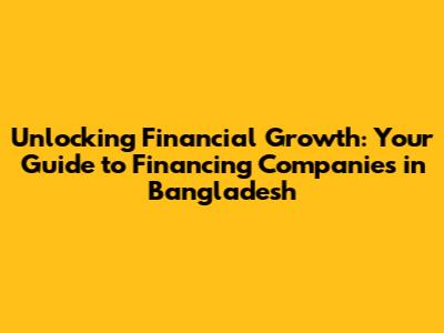 Unlocking Financial Growth: Your Guide To Financing Companies In Bangladesh