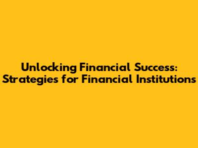 Unlocking Financial Success: Strategies For Financial Institutions
