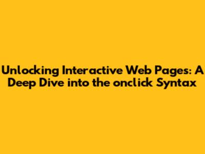 Unlocking Interactive Web Pages: A Deep Dive Into The `onclick` Syntax