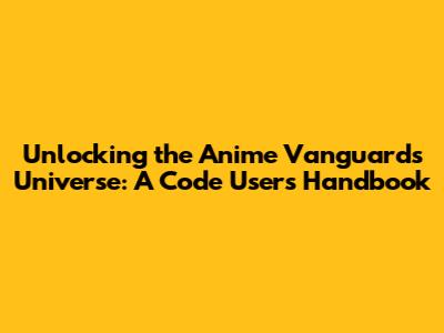 Unlocking The Anime Vanguards Universe: A Code User's Handbook