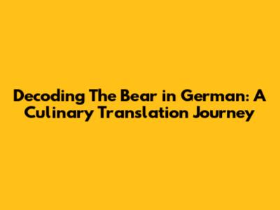 Understanding the Core: How to Translate 'The Bear' into German