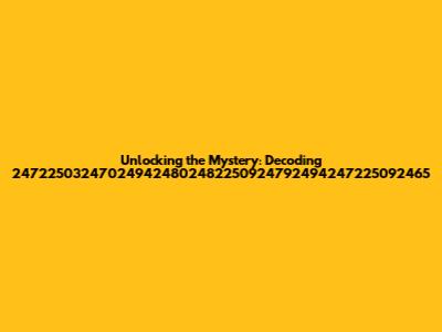 Unlocking The Mystery: Decoding 247225032470249424802482250924792494247225092465