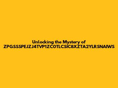 Unlocking The Mystery Of ZPGSSSPEJZJ4TVP1ZC0TLCSIC8XZTA2YLRSNAIWS