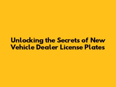 Unlocking The Secrets Of New Vehicle Dealer License Plates