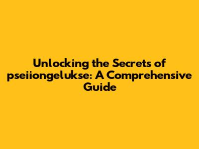 Unlocking The Secrets Of Pseiiongelukse: A Comprehensive Guide