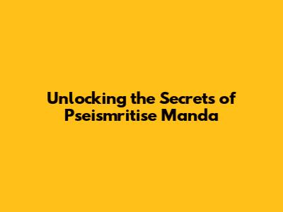 Unlocking The Secrets Of Pseismritise Manda