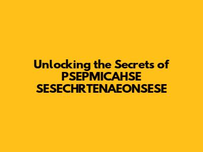 Unlocking The Secrets Of PSEPMICAHSE SESECHRTENAEONSESE