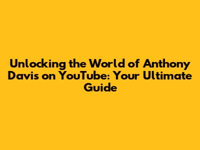 Unlocking The World Of Anthony Davis On YouTube: Your Ultimate Guide