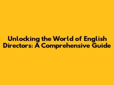 Unlocking The World Of English Directors: A Comprehensive Guide