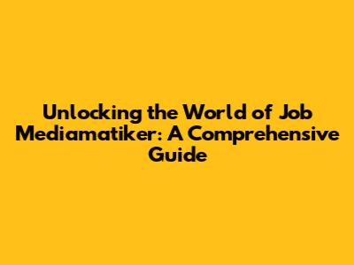 Unlocking The World Of Job Mediamatiker: A Comprehensive Guide