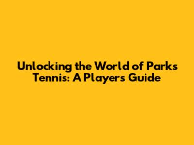 Unlocking The World Of Parks Tennis: A Player's Guide