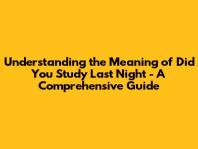 Unpacking 'Did You Study Last Night': Meaning And Usage