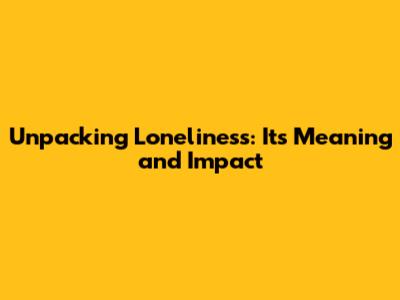 Unpacking Loneliness: Its Meaning And Impact