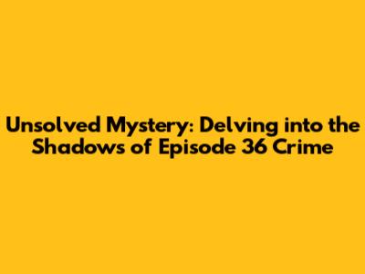 Unsolved Mystery: Delving Into The Shadows Of Episode 36 Crime