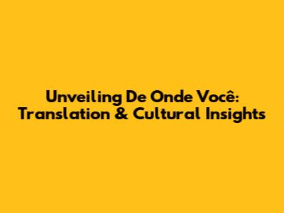Unveiling 'De Onde Você': Translation & Cultural Insights