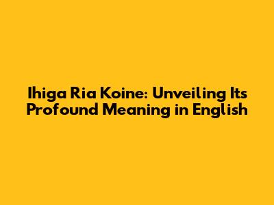 Unveiling Ihiga Ria Koine: Meaning And Significance