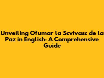 Unveiling 'Ofumar La Scvivasc De La Paz' In English: A Comprehensive Guide