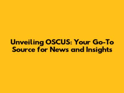 Unveiling OSCUS: Your Go-To Source For News And Insights