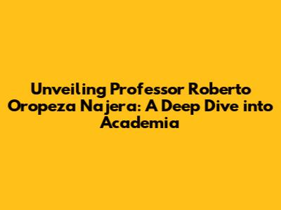 Unveiling Professor Roberto Oropeza Najera: Insights & Expertise