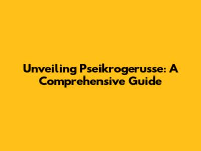 Unveiling Pseikrogerusse: A Comprehensive Guide