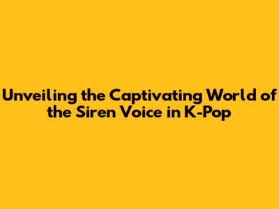 Unveiling The Allure Of The Siren Voice In K-Pop