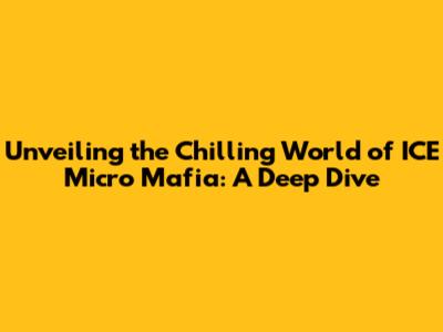 Unveiling The Chilling World Of ICE Micro Mafia: A Deep Dive