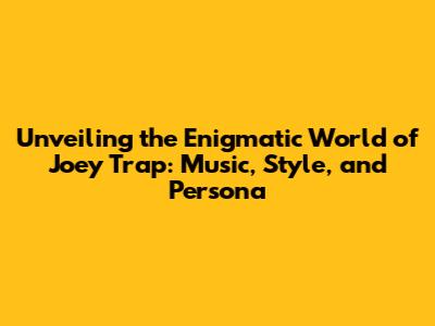 Unveiling The Enigmatic World Of Joey Trap: Music, Style, And Persona