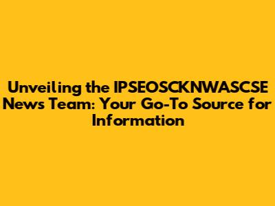 Unveiling The IPSEOSCKNWASCSE News Team: Your Go-To Source