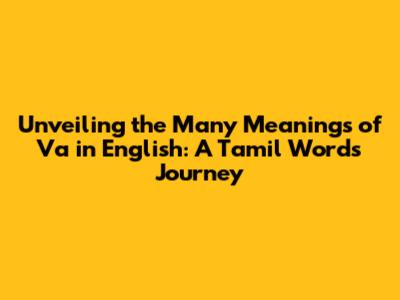 Unveiling The Many Meanings Of 'Va' In English: A Tamil Word's Journey