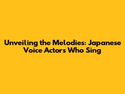 Unveiling The Melodies: Japanese Voice Actors Who Sing