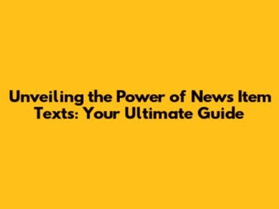 Unveiling The Power Of News Item Texts: Your Ultimate Guide