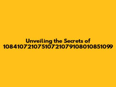 Unveiling The Secrets Of 10841072107510721079108010851099