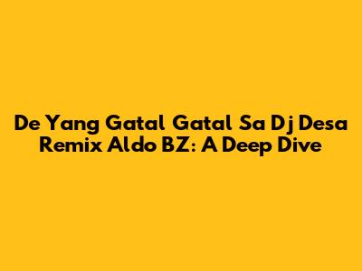 Hey guys! Ever stumbled upon a song that just instantly gets stuck in your head? Well, that's exactly what happened with the viral sensation, the "De Yang Gatal Gatal Sa Dj Desa Remix" by Aldo BZ. This track has been making waves online, and for good reason! It's a catchy, upbeat tune that's perfect for any mood. Let's dive deep into what makes this remix so special, exploring its origins, its impact, and why it's become such a massive hit.