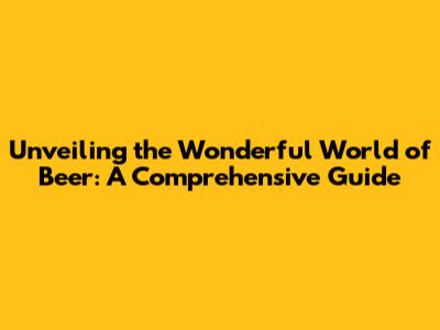 Unveiling The Wonderful World Of Beer: A Comprehensive Guide