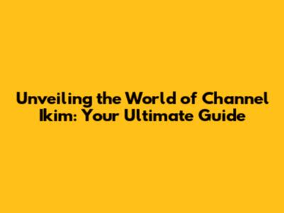 Unveiling The World Of Channel Ikim: Your Ultimate Guide