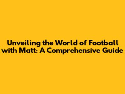 Unveiling The World Of Football With Matt: A Comprehensive Guide
