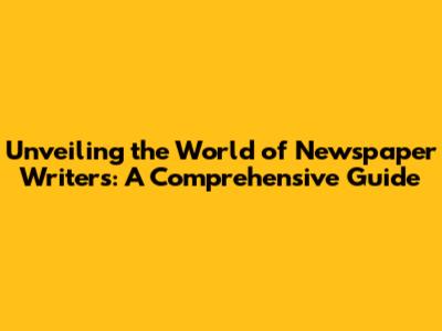 Unveiling The World Of Newspaper Writers: A Comprehensive Guide
