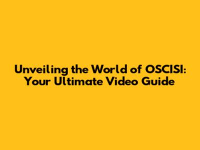 Unveiling The World Of OSCISI: Your Ultimate Video Guide