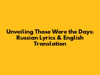 Unveiling 'Those Were The Days': Russian Lyrics & English Translation