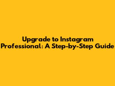 Upgrade To Instagram Professional: A Step-by-Step Guide