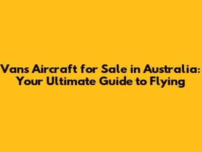 Finding Vans Aircraft for Sale in Australia: Where to Look