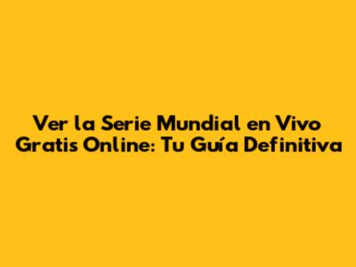 Ahora, hablemos de lo que todos quieren saber: ¿cómo ver la Serie Mundial gratis? La verdad es que las opciones gratuitas son limitadas y a menudo implican ciertos riesgos. Sin embargo, aquí les damos algunas alternativas, siempre con la advertencia de que deben ser cautelosos y verificar la legitimidad de la fuente.