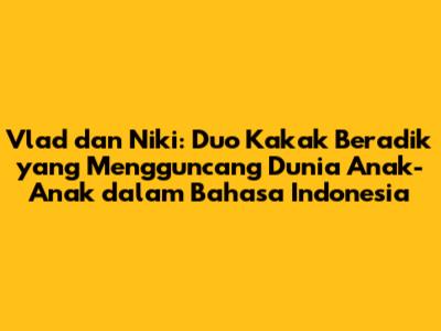 Vlad dan Niki, siapa yang tak kenal dengan duo kakak beradik yang menggemaskan ini? Mereka telah berhasil mencuri hati jutaan anak-anak di seluruh dunia, termasuk di Indonesia. Dengan konten yang kreatif, menghibur, dan mendidik, Vlad dan Niki telah menjadi idola baru bagi generasi muda. Dalam artikel ini, kita akan membahas lebih dalam tentang Vlad dan Niki, mulai dari profil mereka, konten-konten terbaru yang sedang digemari, hingga dampak positif yang mereka berikan bagi anak-anak Indonesia. Mari kita telusuri bersama petualangan seru Vlad dan Niki!