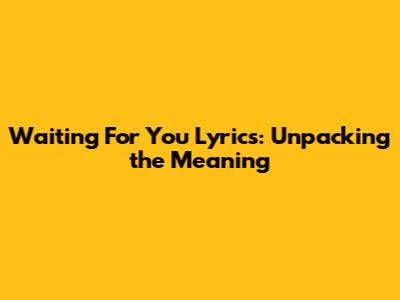 Waiting For You Lyrics: Unpacking The Meaning