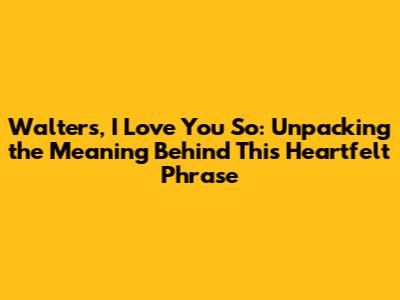 Walters I Love You So: Meaning And Significance