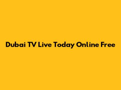 Watch Dubai TV Live Online Free Today!