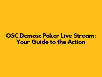 Where to Watch the OSC Demosc Poker Live Stream