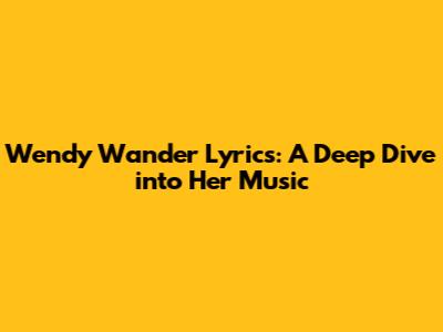 Wendy Wander Lyrics: A Deep Dive Into Her Music