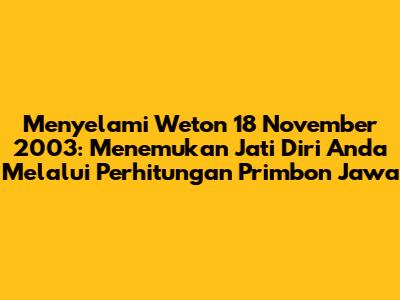Hebat banget, guys! Kamu lahir di tanggal 18 November 2003? Wah, itu artinya kamu punya weton spesial yang bisa ngasih kita banyak insight tentang kepribadian, rezeki, sampai jodoh. Di artikel ini, kita bakal bongkar tuntas semua rahasia weton 18 November 2003 pakai primbon Jawa yang legendaris. Jadi, siap-siap ya, karena kita bakal menyelami dunia perhitungan weton yang unik dan penuh makna. Nggak cuma sekadar angka, tapi ini adalah kunci buat kamu lebih kenal sama diri sendiri dan orang-orang di sekitarmu. Udah penasaran kan? Yuk, langsung aja kita mulai petualangan primbon ini!