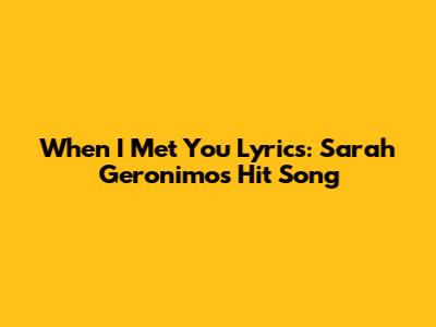 When I Met You Lyrics: Sarah Geronimo's Hit Song